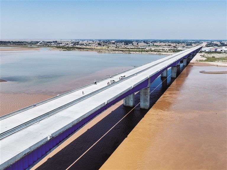 9月28日,包茂高速公路昭君黃河特大橋?qū)崿F(xiàn)主體完工。昭君黃河特大橋是包茂高速包頭至東勝改擴(kuò)建工程包頭西連接線的控制性工程,主橋?yàn)閲?guó)內(nèi)在建單聯(lián)最長(zhǎng)的梁式橋,采用雙向4車道高速公路標(biāo)準(zhǔn)建設(shè),全長(zhǎng)4300米。該橋建成通車后,將極大地縮短包鄂兩地的行車時(shí)間,提升路網(wǎng)通行能力。(本報(bào)記者 王曉博 攝)