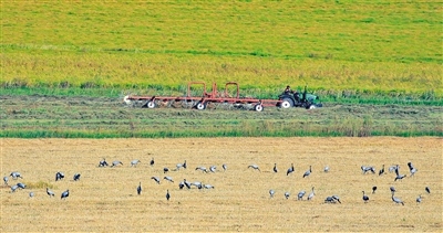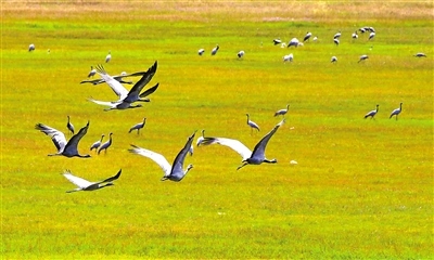 在這優(yōu)美畫(huà)卷中,蓑羽鶴就是額侖草原上的精靈,給草原平添了生命的活力。蓑羽鶴是鶴類中個(gè)體最小者,對(duì)生態(tài)環(huán)境質(zhì)量要求很高。從之前的形單影只,到現(xiàn)在的成群結(jié)隊(duì),蓑羽鶴對(duì)額侖草原的青睞,足以說(shuō)明了額侖草原生態(tài)環(huán)境的保護(hù)成效。