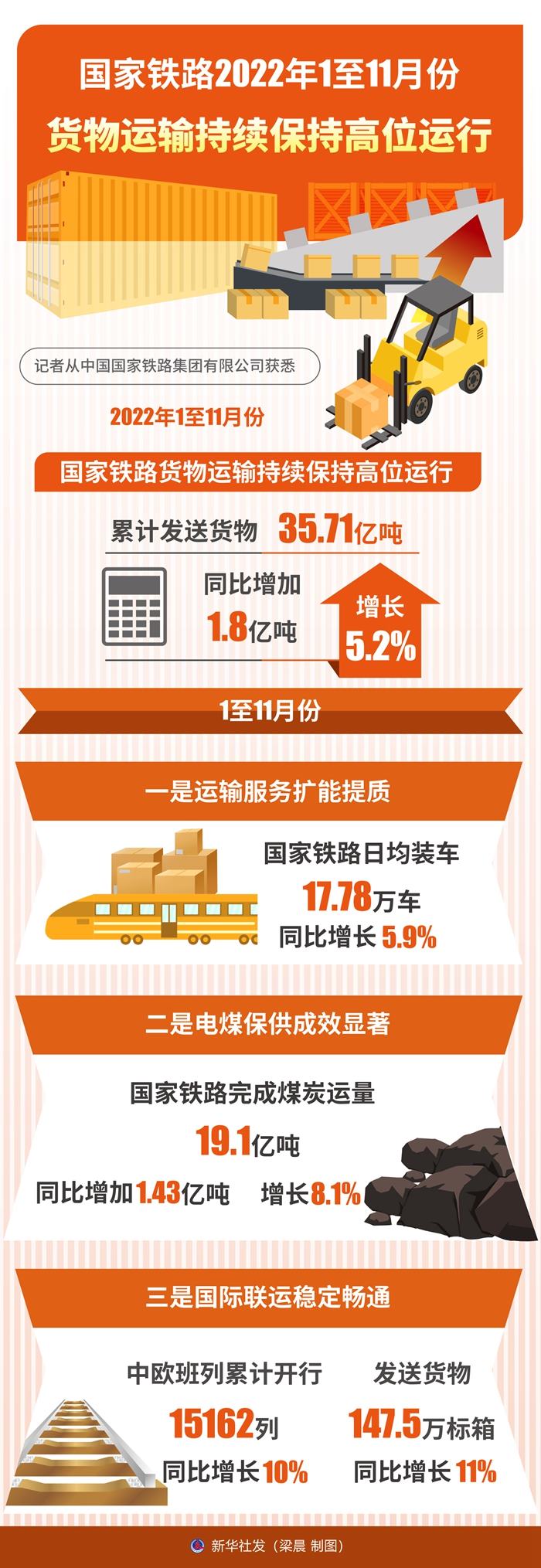 國鐵集團貨運部負(fù)責(zé)人介紹,今年以來,國鐵集團堅決貫徹落實黨中央、國務(wù)院關(guān)于穩(wěn)住經(jīng)濟大盤、做好物流保通保暢工作的部署要求,高效統(tǒng)籌疫情防控和鐵路運輸,全力保障國計民生重點物資運輸,為暢通國內(nèi)國際雙循環(huán)、保障國民經(jīng)濟平穩(wěn)運行提供有力支撐。