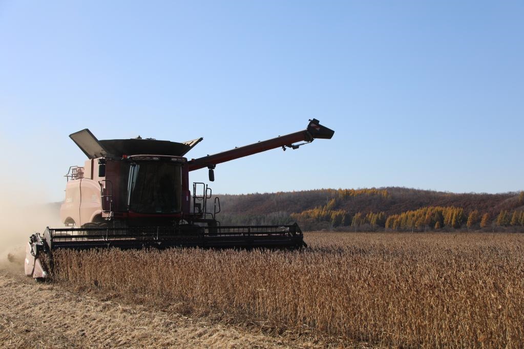 今年秋收,北大荒集團(tuán)錦河農(nóng)場(chǎng)有限公司大豆收獲現(xiàn)場(chǎng)。新華社記者 黃騰 攝