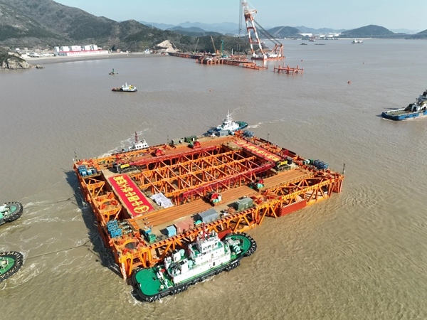 人民網(wǎng)北京2月17日電 (記者王連香)據(jù)中國(guó)鐵路上海局集團(tuán)有限公司消息,2月16日13時(shí)30分,在寧波至舟山鐵路(以下簡(jiǎn)稱(chēng)甬舟鐵路)西堠門(mén)公鐵兩用大橋建設(shè)現(xiàn)場(chǎng),5號(hào)墩自浮式鉆孔平臺(tái),經(jīng)過(guò)8個(gè)小時(shí)的海上浮運(yùn),準(zhǔn)確到達(dá)5號(hào)主塔墩墩址處,標(biāo)志著世界最大跨度公鐵兩用大橋和世界最寬跨海大橋主塔墩基礎(chǔ)建設(shè)拉開(kāi)序幕。