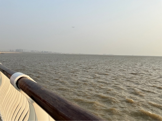 飛機(jī)飛過濱海驛站上空。人民網(wǎng)記者 趙雯攝
