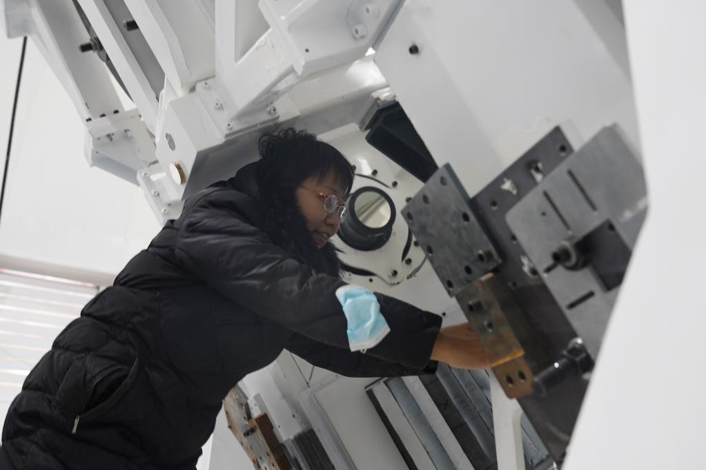 4月8日,中國科學院國家天文臺懷柔太陽觀測基地總工程師王東光在AIMS圓頂內工作。(新華社記者陳杰 攝)