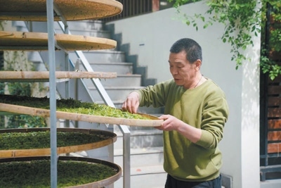 “也是巧了!原本兩周前房間就預(yù)訂光了,有個(gè)來自上海的團(tuán)隊(duì)預(yù)約到茶山采茶,但今天客人臨時(shí)調(diào)整房間,多出來一間房,你們感興趣也可以去采茶?!碑吔终f,“茶園就在后山上,走著就到了。明天上午采茶,下午晾曬,晚上炒制,當(dāng)晚就能喝到自己親手摘的綠茶了?!倍庞轩i和老伴兒聽了很感興趣,當(dāng)即決定多住一晚。