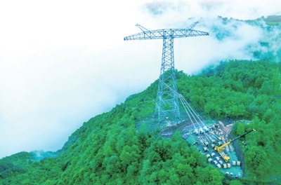 國(guó)家電網(wǎng)白鶴灘至浙江±800千伏特高壓輸電工程四川段放線(xiàn)現(xiàn)場(chǎng)。 盧忠東攝
