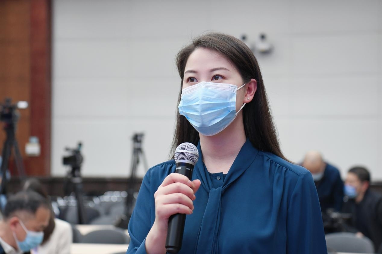 人民網(wǎng)記者任妍在2023年一季度財政收支情況新聞發(fā)布會上提問。中國財經(jīng)報余波 攝