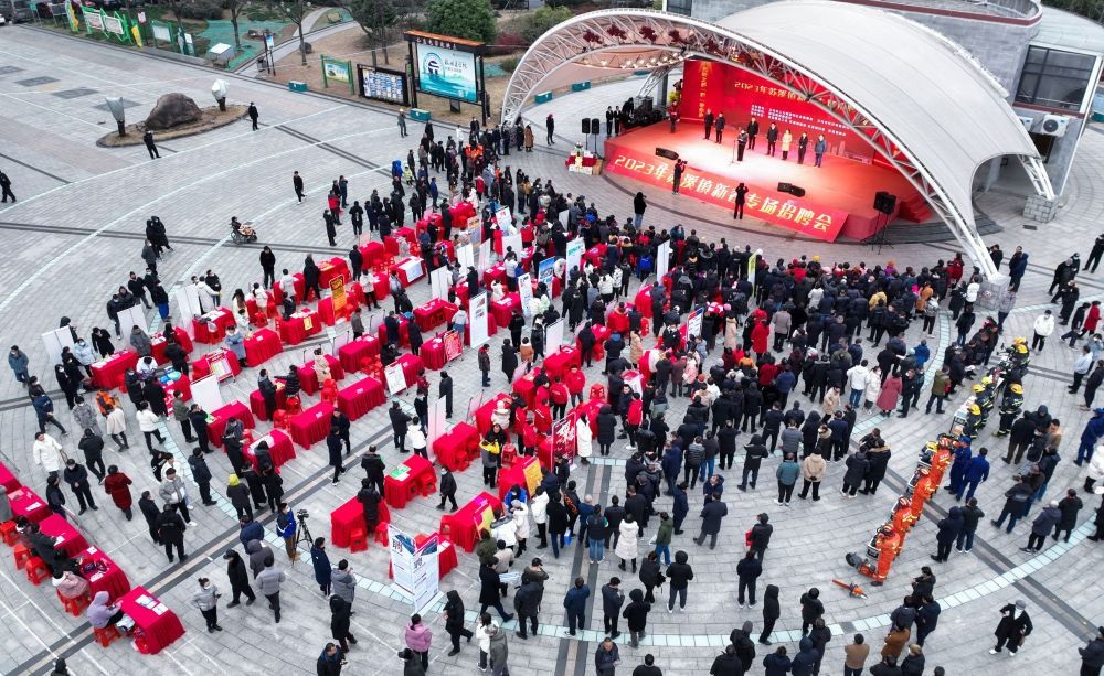 2月4日拍攝的浙江省義烏市蘇溪鎮(zhèn)“百企千崗”新春首場招聘會(huì)現(xiàn)場(無人機(jī)照片)。新華社記者 徐昱 攝