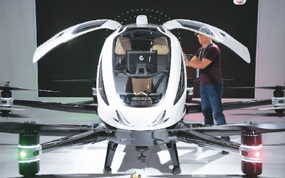 圖為廣交會新設置的新能源及智能網(wǎng)聯(lián)汽車展區(qū)內,采購商在了解正在展示的飛行器產(chǎn)品。新華社記者 鄧 華攝
