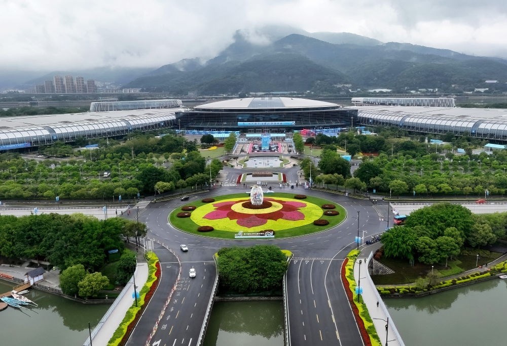 這是4月26日拍攝的第六屆數(shù)字中國建設(shè)峰會(huì)主辦地福州海峽國際會(huì)展中心外景(無人機(jī)照片)。新華社記者 魏培全 攝