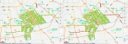 但在北京的亦莊AI信控區(qū)域內(nèi),假期的到來(lái)并未對(duì)亦莊市民的生活產(chǎn)生影響,4月28日晚高峰期間,亦莊區(qū)域受到北京交通壓力影響,300多個(gè)路口車(chē)流量雖有上漲,但在交通大模型的支持下,整片區(qū)域一路飄綠,擁堵指數(shù)控制在1.6以?xún)?nèi)。通過(guò)數(shù)據(jù)對(duì)比可以看出,百度AI信控及交通大模型技術(shù),有效緩解了重大突發(fā)交通壓力下的擁堵情況,能夠?yàn)槌鞘械慕煌ǔ鲂袔?lái)巨大的改變。