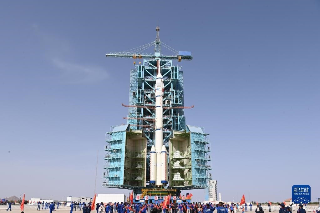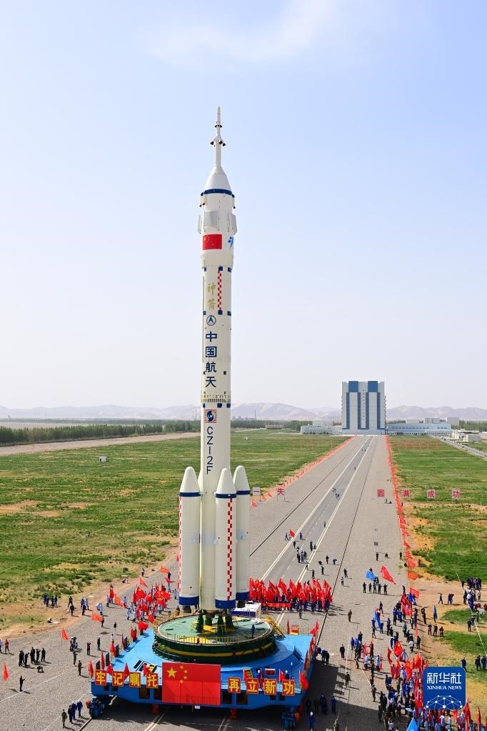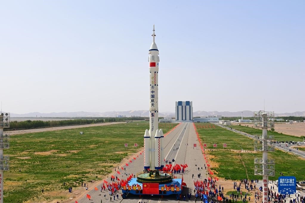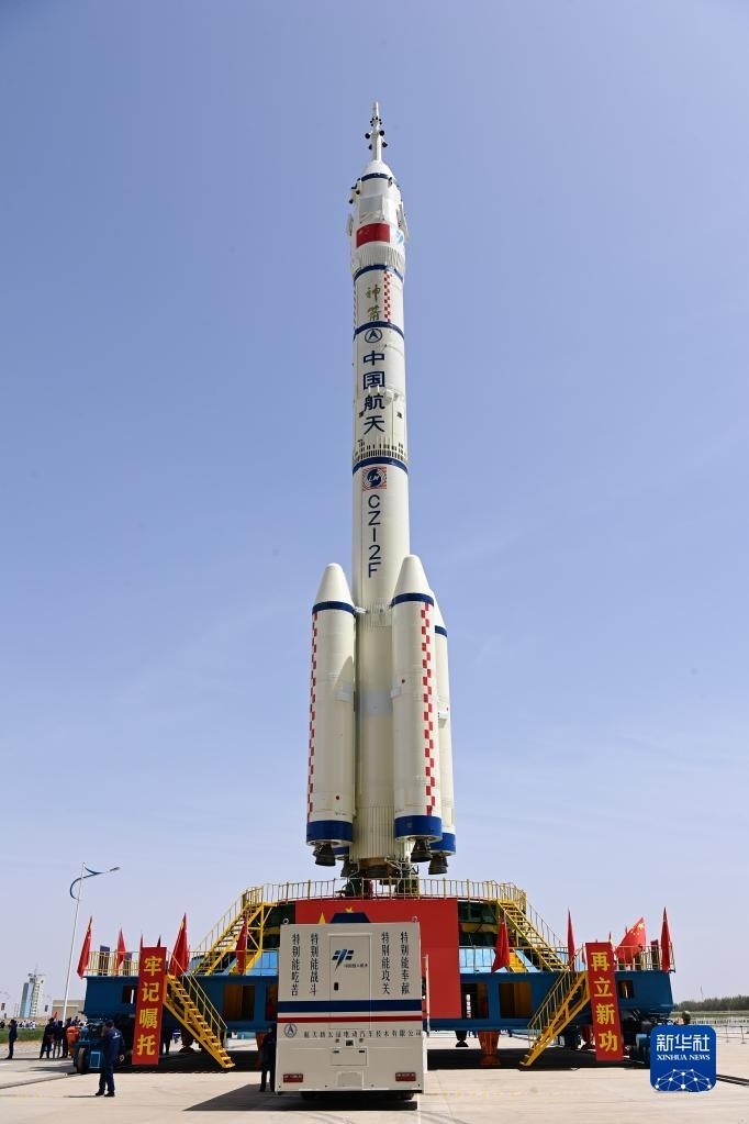 5月22日,神舟十六號(hào)載人飛船與長(zhǎng)征二號(hào)F遙十六運(yùn)載火箭組合體準(zhǔn)備轉(zhuǎn)往發(fā)射場(chǎng)。新華社發(fā)(汪江波 攝)