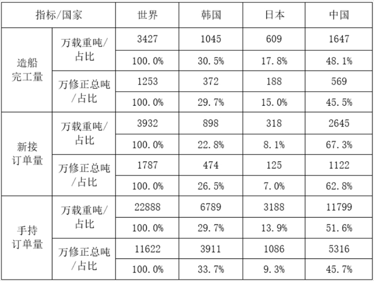 另據(jù)數(shù)據(jù)顯示,1-5月,全國造船完工量569萬修正總噸,同比增長29%;新承接船舶訂單量1122萬修正總噸,同比增長24.2%。截至5月底,手持船舶訂單量5316萬修正總噸,同比增長27.4%。按修正總噸計(jì),中國造船完工量、新接訂單量、手持訂單量分別占世界市場(chǎng)份額的45.5%、62.8%和45.7%。