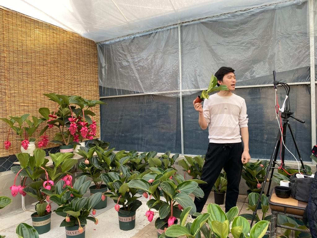 李莎莎以前在外打工,看到朋友直播賣花搞得很紅火,便產(chǎn)生了回鄉(xiāng)創(chuàng)業(yè)的念頭?!叭チ撕芏嗷ɑ艽笈铮罱K決定賣寶蓮燈花。這個從荷蘭引進的品種,葉片寬厚、花形碩大,看上去高貴大氣?!弊鳛榍嘀莸谝慌辈ナ圪u寶蓮燈花的農(nóng)戶,李莎莎的電商已經(jīng)小有規(guī)模,日銷90盆左右,多的時候每天賣到200盆。