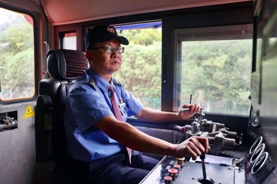 黃偉在操作機(jī)車。受訪者供圖