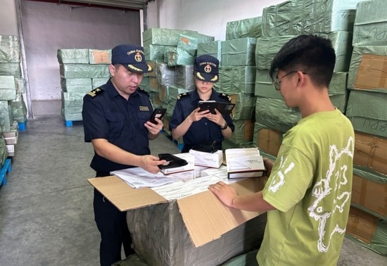 周華偉和搭檔一起對(duì)出口貨物進(jìn)行查驗(yàn)。受訪者供圖