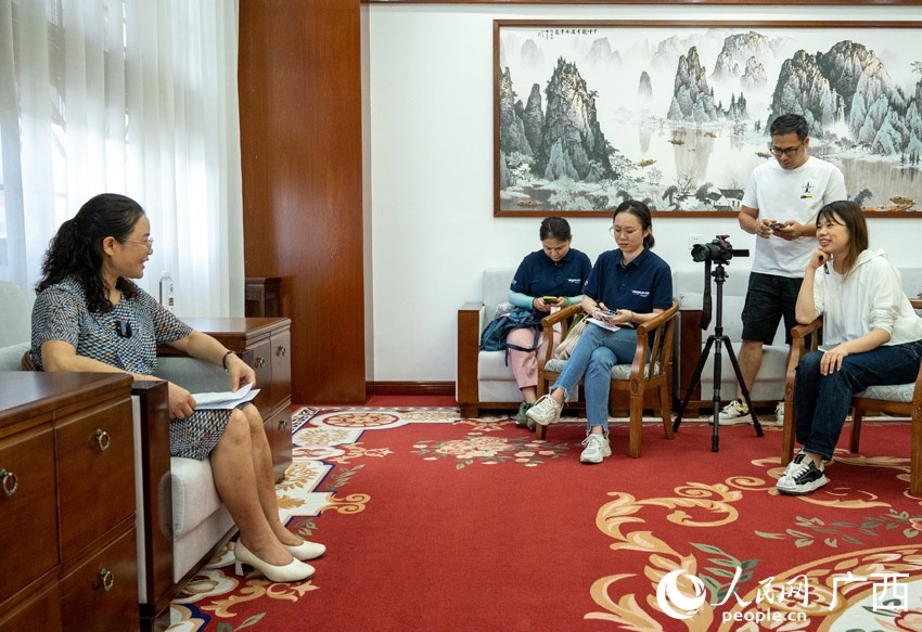 采訪團在廣西民族大學(xué)采訪教師代表。人民網(wǎng) 嚴(yán)立政攝