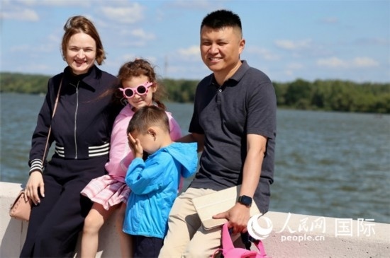 邢亮與妻子娜斯佳還有孩子們?cè)诤吷⒉?。人民網(wǎng)記者 朱虹攝