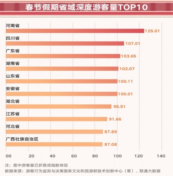 返鄉(xiāng)探親游客量大,“老家游”成熱點(diǎn)。本次春節(jié)假期,周口、商丘、阜陽、南陽、信陽、駐馬店、衡陽、畢節(jié)、南充、邵陽、黃岡、菏澤等城市進(jìn)入了外地深度游前30。這些城市今年春節(jié)旅游活動(dòng)豐富,周邊城市和探親游客的到來極大地帶動(dòng)了這些“老家”城市春節(jié)旅游市場。