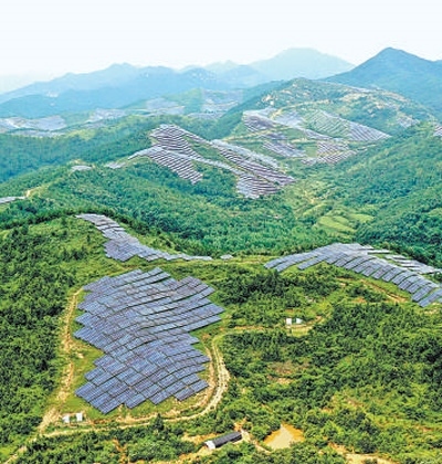 迎著春日的晨光,走進湖北隨州廣水市十里街道寶林寺村,滿是光伏板的向陽山坡,像一面巨大的鏡子,在陽光下熠熠生輝。