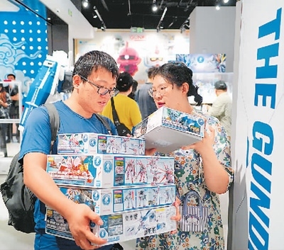 5月17日,北京高達(dá)基地旗艦店在王府井銀泰in88開業(yè),現(xiàn)場(chǎng)成品高達(dá)模型吸引不少市民參觀。圖為消費(fèi)者正在選購(gòu)。宋家儒攝(人民圖片)