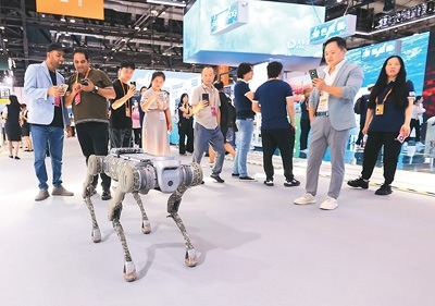 觀眾在2024年中國(guó)國(guó)際服務(wù)貿(mào)易交易會(huì)上觀看四足機(jī)器狗表演。以上圖片均由陳曉根攝(人民視覺(jué))