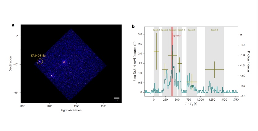 此后,世界各地多個天文望遠(yuǎn)鏡陸續(xù)觀測到EP240315a。研究結(jié)果表明,EP240315a產(chǎn)生于遙遠(yuǎn)的早期宇宙,當(dāng)時宇宙年齡僅為現(xiàn)在的10%,EP240315a的信號花費了125億年才抵達(dá)地球。