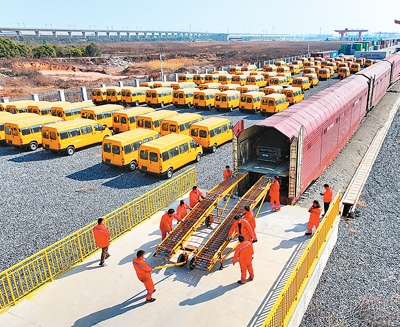 日前,搭載著290臺“江西制造”新能源汽車的中歐班列駛出南昌國際陸港,經(jīng)霍爾果斯口岸出境運(yùn)抵哈薩克斯坦、烏茲別克斯坦等國家銷售。