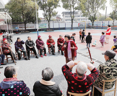 圖為江西省新余市渝水區(qū)“一老一小幸福院”里,老人、孩子與志愿者一起參加活動。