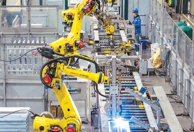 根據(jù)最新國家標(biāo)準(zhǔn),4層及以上住宅應(yīng)設(shè)置電梯。圖為近日,在位于浙江省寧波市鄞州區(qū)東吳鎮(zhèn)的寧波宏大電梯有限公司,智能生產(chǎn)車間的機(jī)械臂在加工電梯部件。