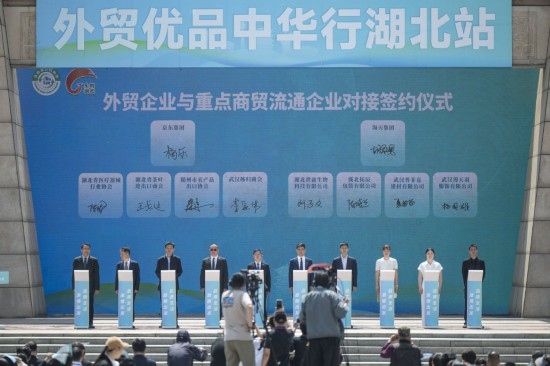 外貿(mào)優(yōu)品中華行湖北站暨“樂購湖北”消費(fèi)季活動26日在武漢市漢口北國際貿(mào)易城啟動?;顒又荚诖蛟斐隹诋a(chǎn)品拓內(nèi)銷的標(biāo)志性平臺,通過系列專題對接活動,助力外貿(mào)企業(yè)開拓國內(nèi)市場,促進(jìn)消費(fèi)升級。啟動儀式現(xiàn)場,京東集團(tuán)、淘天集團(tuán)、武商集團(tuán)、武漢國貿(mào)集團(tuán)等現(xiàn)場與益海嘉里食品營銷有限公司、東莞徐記食品有限公司等外貿(mào)出口企業(yè)簽訂出口轉(zhuǎn)內(nèi)銷采購協(xié)議、合作計劃,簽約金額145億元,為湖北外貿(mào)企業(yè)拓展內(nèi)需市場注入強(qiáng)勁動力。