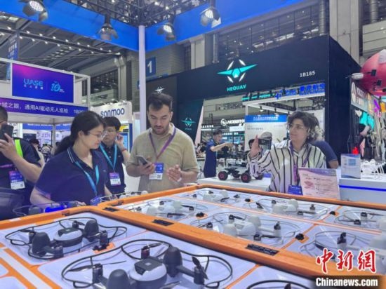 國(guó)外采購商咨詢新型無人機(jī)。 記者 索有為 攝
