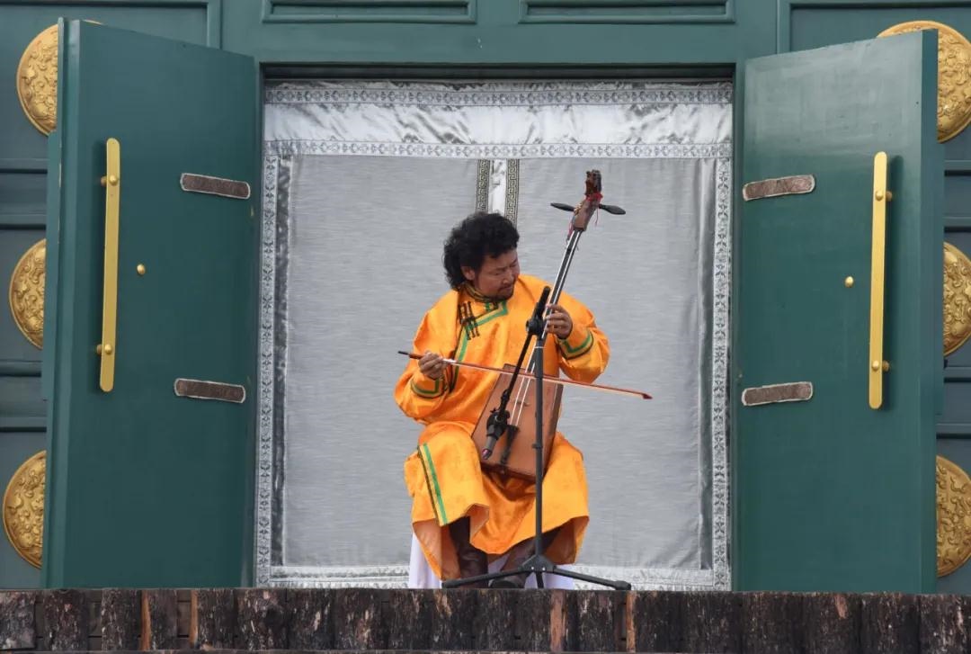 蒙古族非遺節(jié)目組合、二人臺歌舞《掛紅燈》、馬頭琴獨奏等具有強烈草原符號的節(jié)目使現(xiàn)場高潮不斷?,F(xiàn)場烏蘭圖雅深情誦讀《敕勒歌》引來陣陣掌聲。