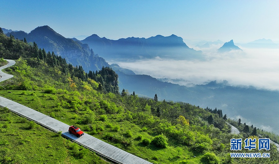 山巒、鄉(xiāng)村公路若隱若現(xiàn),好一幅春和景明的山鄉(xiāng)水墨畫(huà)。新華網(wǎng)發(fā)(汪新 攝)