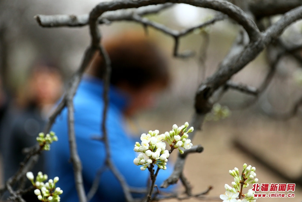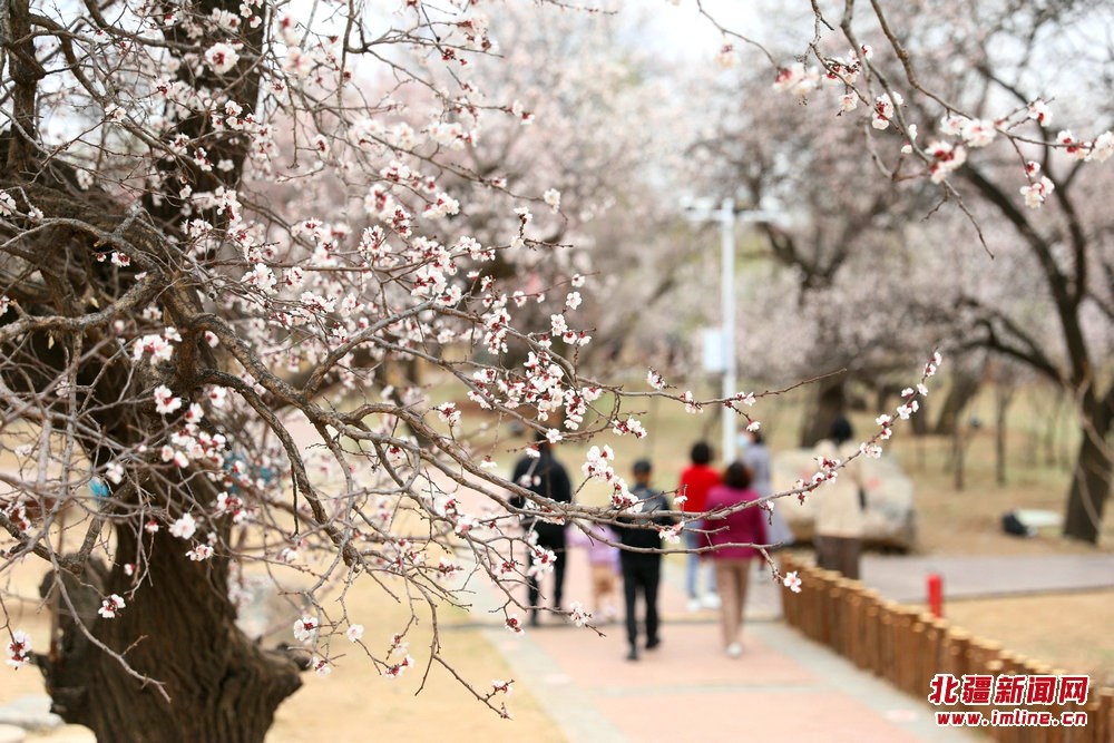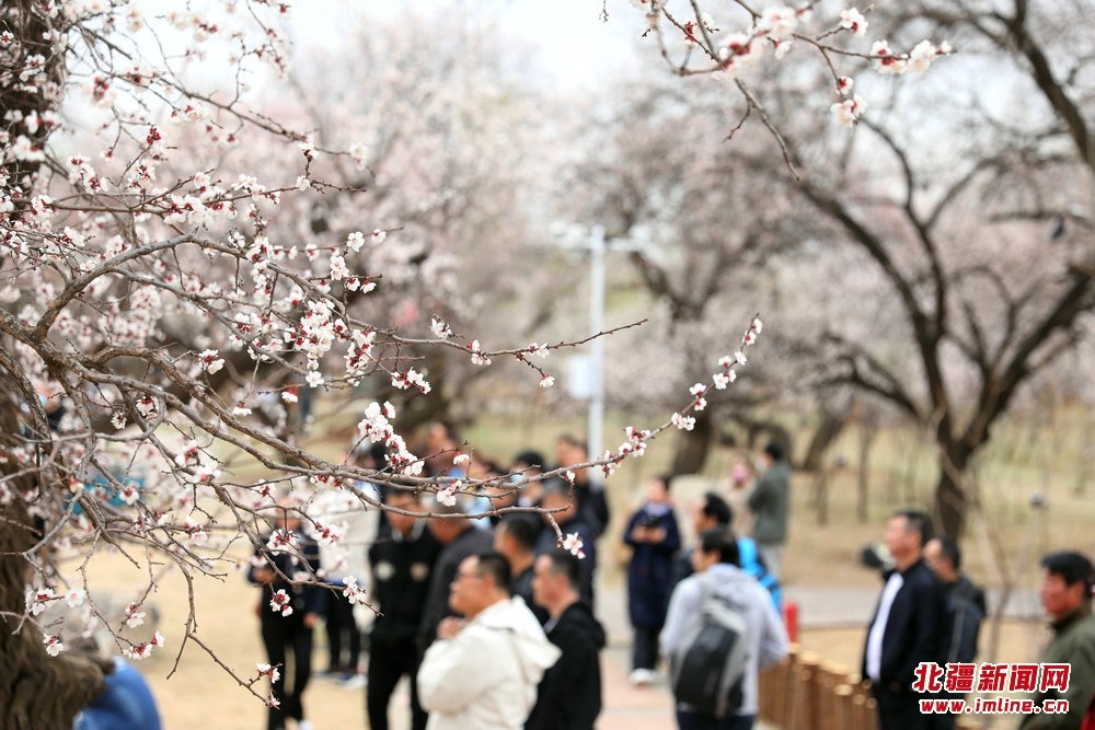 游人在烏素圖老杏園內(nèi)拍照打卡