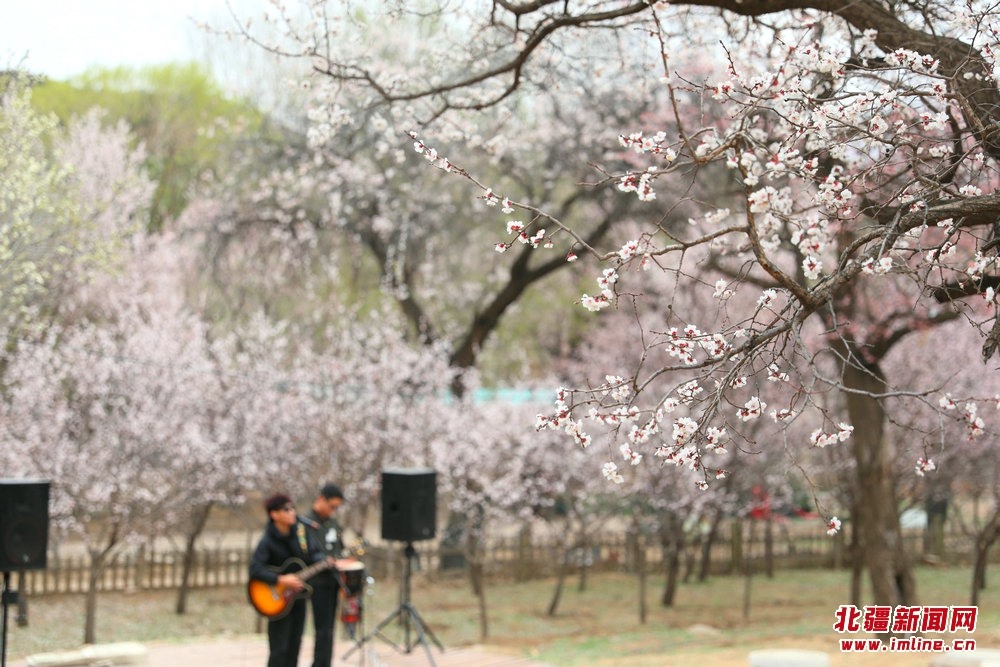烏素圖老杏園內(nèi)樂隊(duì)正在演唱歌曲
