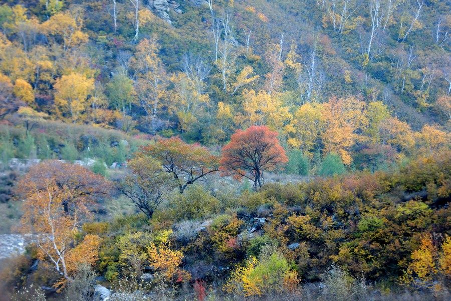 10月7日,呼和浩特大青山小井溝內(nèi),秋色五彩斑斕層林盡染。 北疆新聞?dòng)浾?nbsp; 張楊攝影