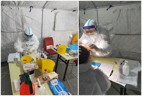 每天她們在臨時(shí)搭建的帳篷中連續(xù)工作十幾個(gè)小時(shí),有時(shí)候檢查的人數(shù)較多,還需要加班加點(diǎn),她經(jīng)常累得腰酸背痛,回到駐地一倒頭就睡著了。