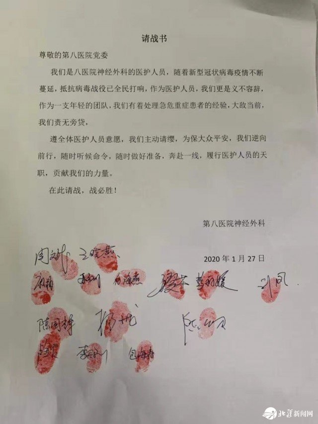 “在當(dāng)前抗擊新型冠狀病毒性肺炎的戰(zhàn)役中,我自愿申請(qǐng)參加醫(yī)院的各項(xiàng)救治工作,隨時(shí)接受黨組織和醫(yī)院安排的任務(wù),不計(jì)個(gè)人得失,無(wú)論生死,履行一名黨員、醫(yī)務(wù)工作者的責(zé)任?!边@是2月3日,記者在正值新婚燕爾的彭麗媛遞交的請(qǐng)戰(zhàn)書上看到的內(nèi)容。為了能沖到抗擊疫情最前線,她剪掉留了十多年的齊腰長(zhǎng)發(fā),寫好請(qǐng)戰(zhàn)書,報(bào)名參加包頭市第三批馳援湖北醫(yī)療隊(duì)員,這位女孩的舉動(dòng),一時(shí)間刷爆了包頭市第八醫(yī)院醫(yī)護(hù)人員的朋友圈。
