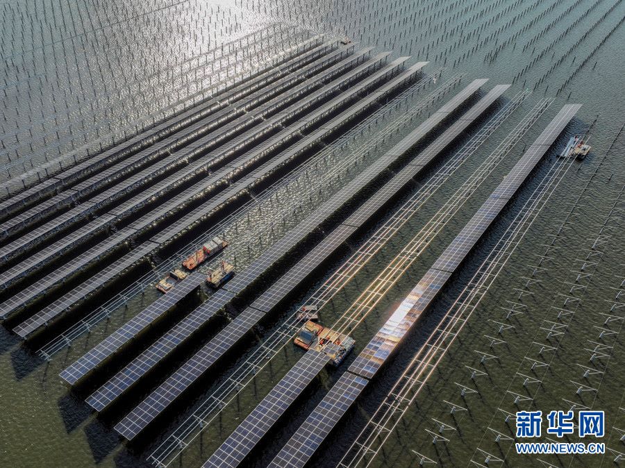 近年來,肥東縣大力發(fā)展新能源產(chǎn)業(yè),積極推廣“漁光互補(bǔ)”光伏電站建設(shè),助力地方經(jīng)濟(jì)發(fā)展并帶動(dòng)群眾就業(yè)。截至目前,該縣已建成和在建的“漁光互補(bǔ)”光伏電站總裝機(jī)容量達(dá)480兆瓦。新華網(wǎng)發(fā)(阮雪楓攝)