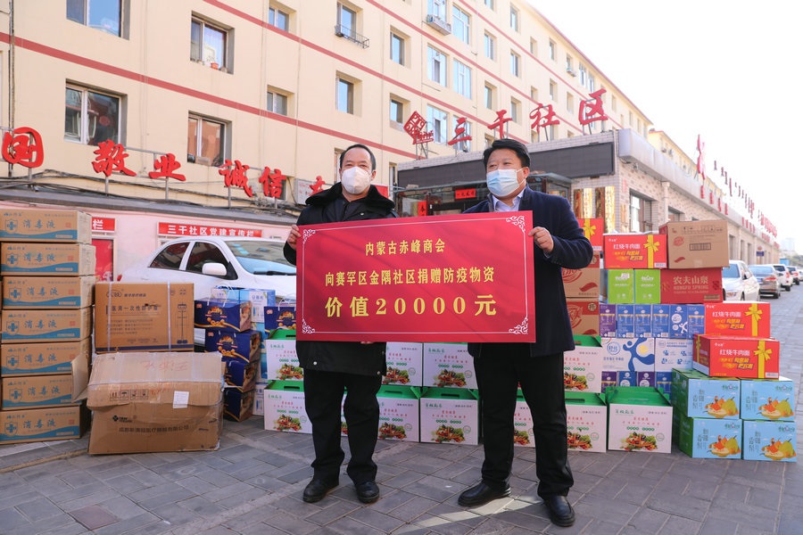 北疆新聞網(wǎng)、北疆新聞APP、北疆云消息(記者 張楊)2月26日下午,由呼和浩特市政協(xié)、呼和浩特市政協(xié)文化文史和學(xué)習(xí)委員會倡議,內(nèi)蒙古赤峰商會發(fā)起的抗疫物資捐贈,在呼和浩特市賽罕區(qū)烏蘭察布街道辦事處三干社區(qū)舉行。內(nèi)蒙古赤峰商會攜會員企業(yè),向呼和浩特市賽罕區(qū)金隅社區(qū)、錦泰榕城社區(qū)、三干社區(qū)和沙爾沁鎮(zhèn)政府捐贈了價值10萬元的抗疫急需物資,助力呼和浩特市一線抗疫。