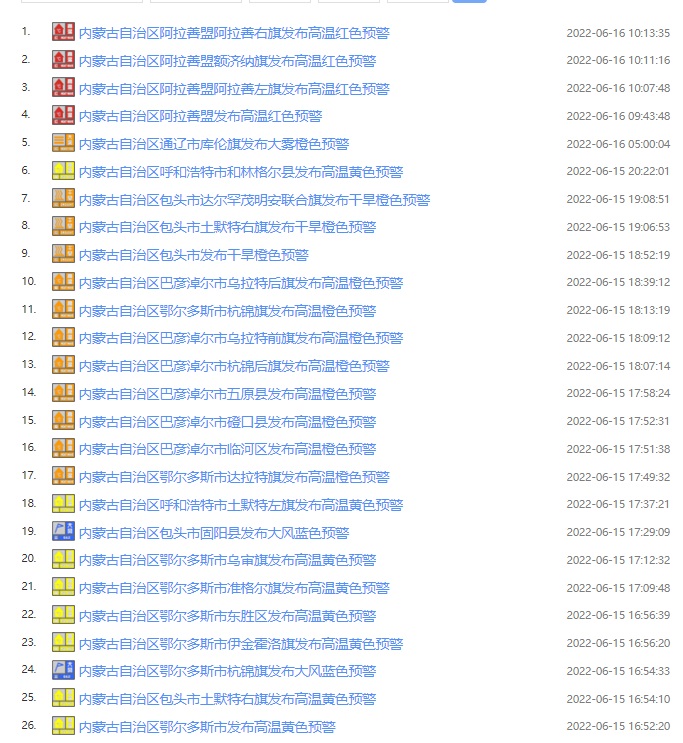 【小常識(shí)】氣象學(xué)上將最高氣溫在35℃以上時(shí)稱為“高溫天氣”,如果某一區(qū)域連續(xù)3天最高氣溫將達(dá)35℃或以上,氣象部門會(huì)發(fā)布高溫黃色預(yù)警,最高氣溫將達(dá)37℃或以上,發(fā)布高溫橙色預(yù)警,最高氣溫將達(dá)40℃或以上,發(fā)布高溫紅色預(yù)警。(北方新報(bào)正北方網(wǎng)記者 馬麗俠)