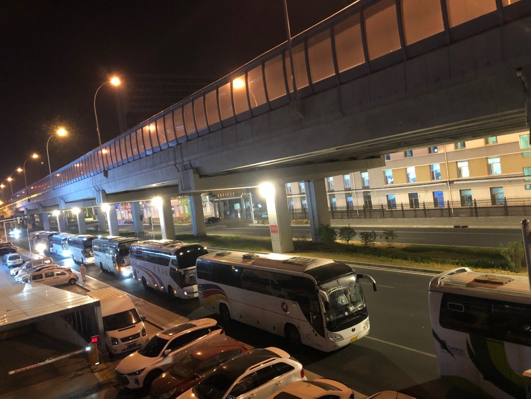 同學(xué)們開(kāi)始登車(chē)前往隔離點(diǎn)