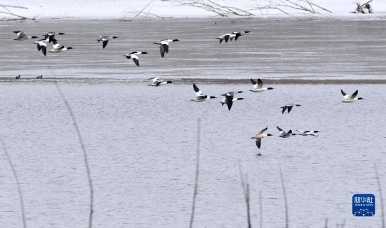 各種鳥(niǎo)類(lèi)在北京園博湖上棲息、飛翔(2月14日攝)。