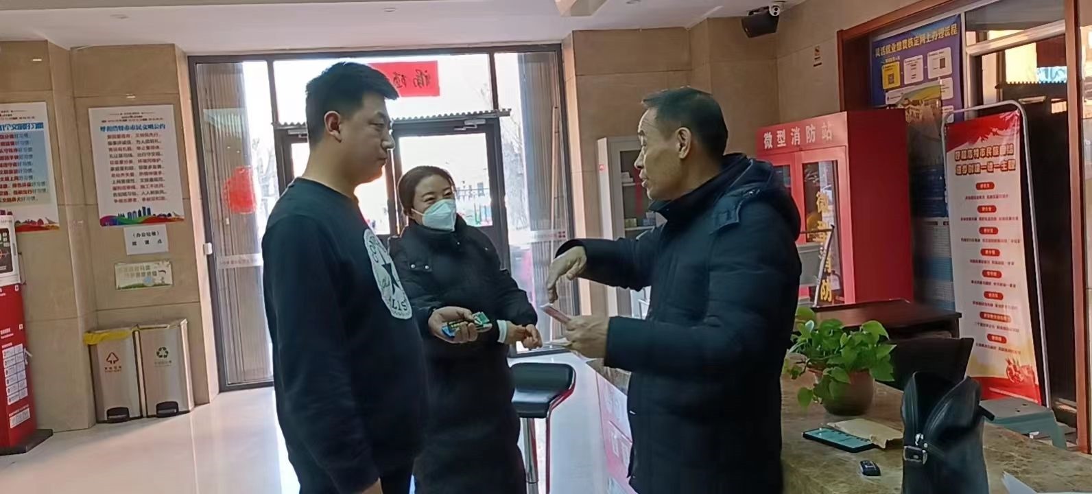 原來,當(dāng)天15時許,呼和浩特市迎新路辦事處團(tuán)結(jié)小區(qū)社區(qū)網(wǎng)格員聶霞和社區(qū)耿書記在團(tuán)結(jié)小區(qū)東區(qū)物貿(mào)樓排查工作中,發(fā)現(xiàn)一垃圾箱旁邊有一個黑色的提包,打開一看,里面裝有近3000元現(xiàn)金和身份證、銀行卡以及多個貴重物品,想到失主一定很著急,聶霞馬上根據(jù)失主身份證上的信息聯(lián)系到失主所在的社區(qū)網(wǎng)格員劉淑萍,經(jīng)過幾番周折,終于與失主取得聯(lián)系。經(jīng)過電話溝通確認(rèn),半小時后,失主劉先生趕到團(tuán)結(jié)小區(qū)社區(qū)居委會,認(rèn)領(lǐng)了自己的物品。