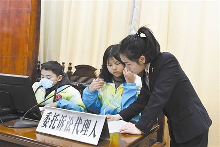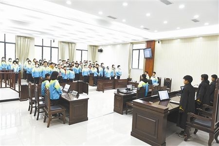 伴隨著“小法官”手中的法槌落下,一場庭審體驗活動正式開始。在法庭干警的指導(dǎo)下,8名學(xué)生“一秒入戲”,從宣讀法庭紀(jì)律、核對當(dāng)事人身份,到法庭調(diào)查、舉證質(zhì)證、法庭辯論,整個庭審程序嚴(yán)謹規(guī)范、秩序井然。