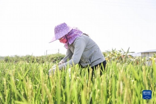 這是2月22日在海南三亞的國家南繁科研育種基地拍攝的已完成雜交實(shí)驗(yàn)的水稻。
