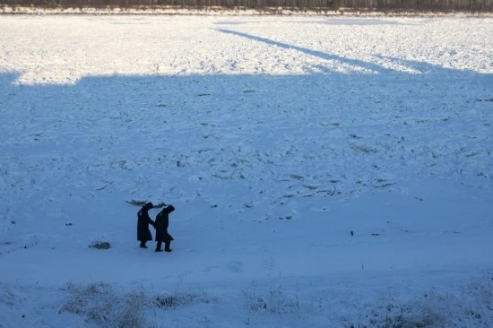 “慢點走,這雪地看著平整,下面還有一層冰。”史先強一邊說一邊攙著沈欣慢慢走。沿著江堤一路下坡,走到頭就是黑龍江,江面中間插著國旗標(biāo)識國界。