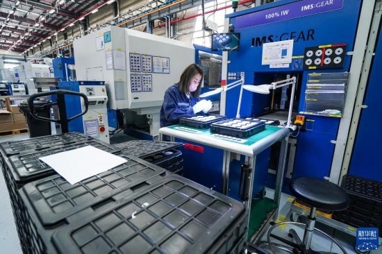 工人在位于太倉(cāng)市高新區(qū)的帝希潔具系統(tǒng)(蘇州)有限公司生產(chǎn)車間內(nèi)進(jìn)行加工作業(yè)(3月16日攝)。