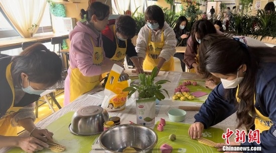 “智慧媽媽團(tuán)”成員們在做點心、話家常。中新網(wǎng)記者 劉湃 攝