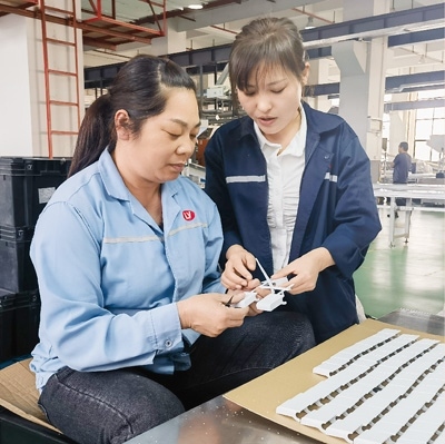 “沒(méi)問(wèn)題,發(fā)微信跟我說(shuō)就行!”黃富安爽快回答。他告訴記者,自己既是指導(dǎo)工,也是質(zhì)檢員,這兩條“媽媽?shí)彙鄙a(chǎn)線和工廠其他車間沒(méi)什么區(qū)別。“質(zhì)量要求都一樣,就是工作時(shí)間更加靈活彈性,工作安排更加人性化,方便女職工照顧小孩?!?/P>
